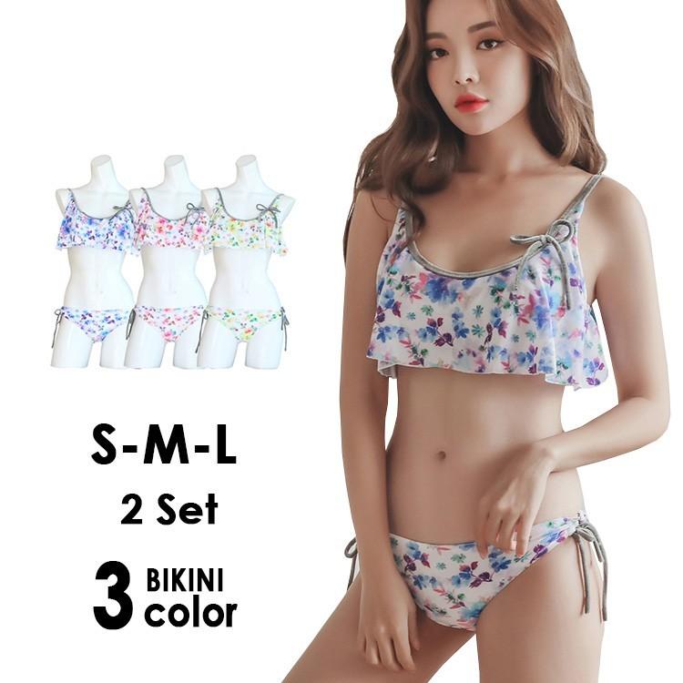 あす楽 水着 レディース 花柄 水着 ビキニ 2点セット バンドゥ ビキニ S M L フリル 通販 楽天 セパレート トレンド かわいい Mizugi 送料無料 Marcsdesign Com